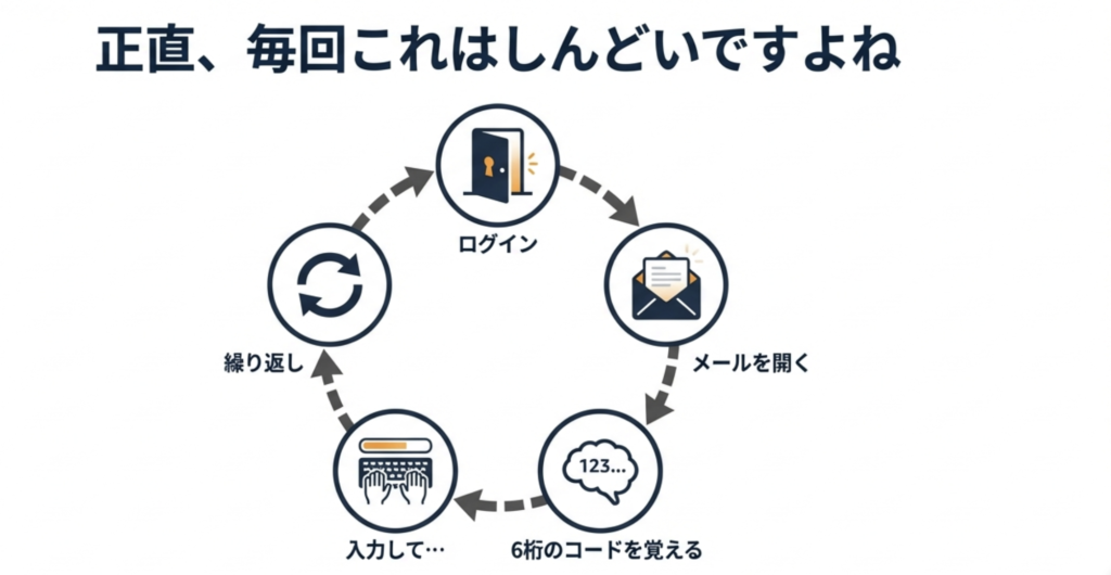 「メールを開いて、6桁のコードを入力して…」