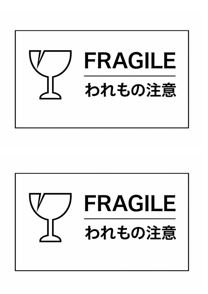 私はこれをA4サイズで印刷し、ハサミで2枚に切ったあとダンボールの側面2箇所に貼って発送しています。