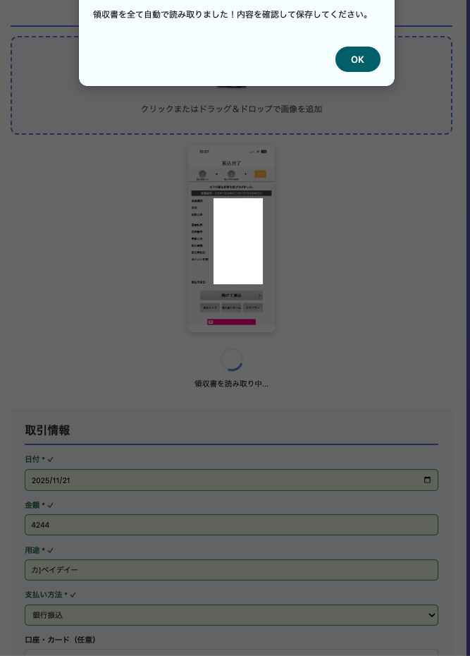 - 画像を入れると内容を読み取る OCR(自動読み取り)
