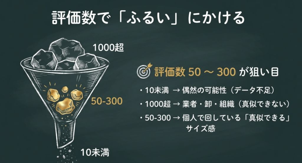 その1- 評価数50〜300=「個人で回している可能性が高い」