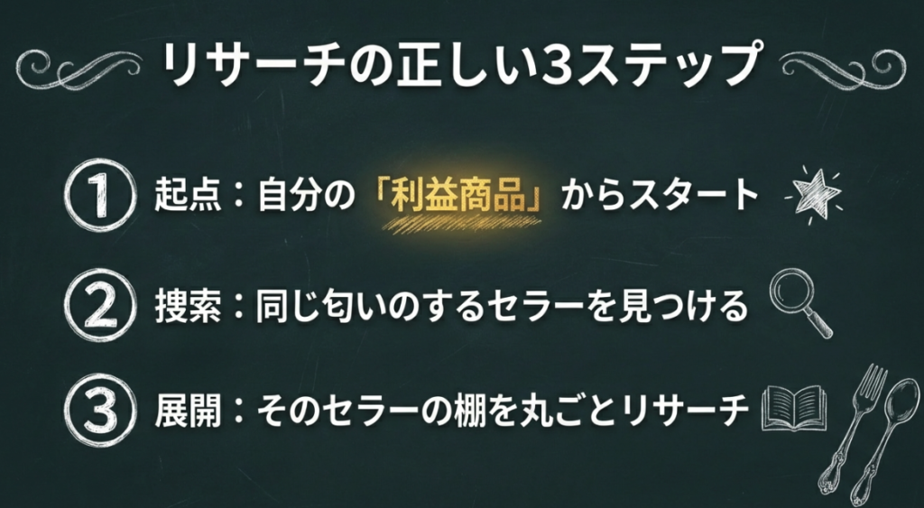 3. セラーリサーチ全体の流れ(正しい3ステップ)