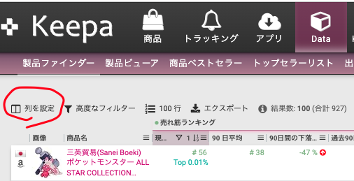 KeepaのProduct Finderでは、